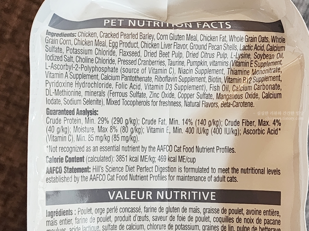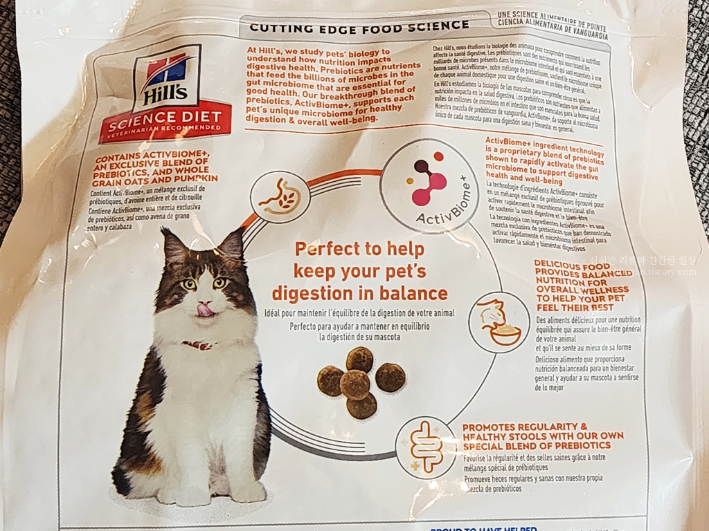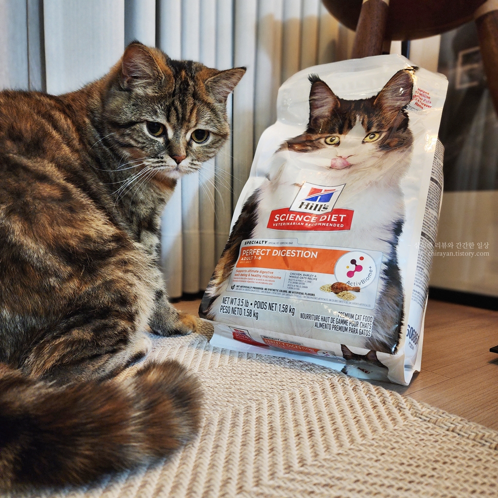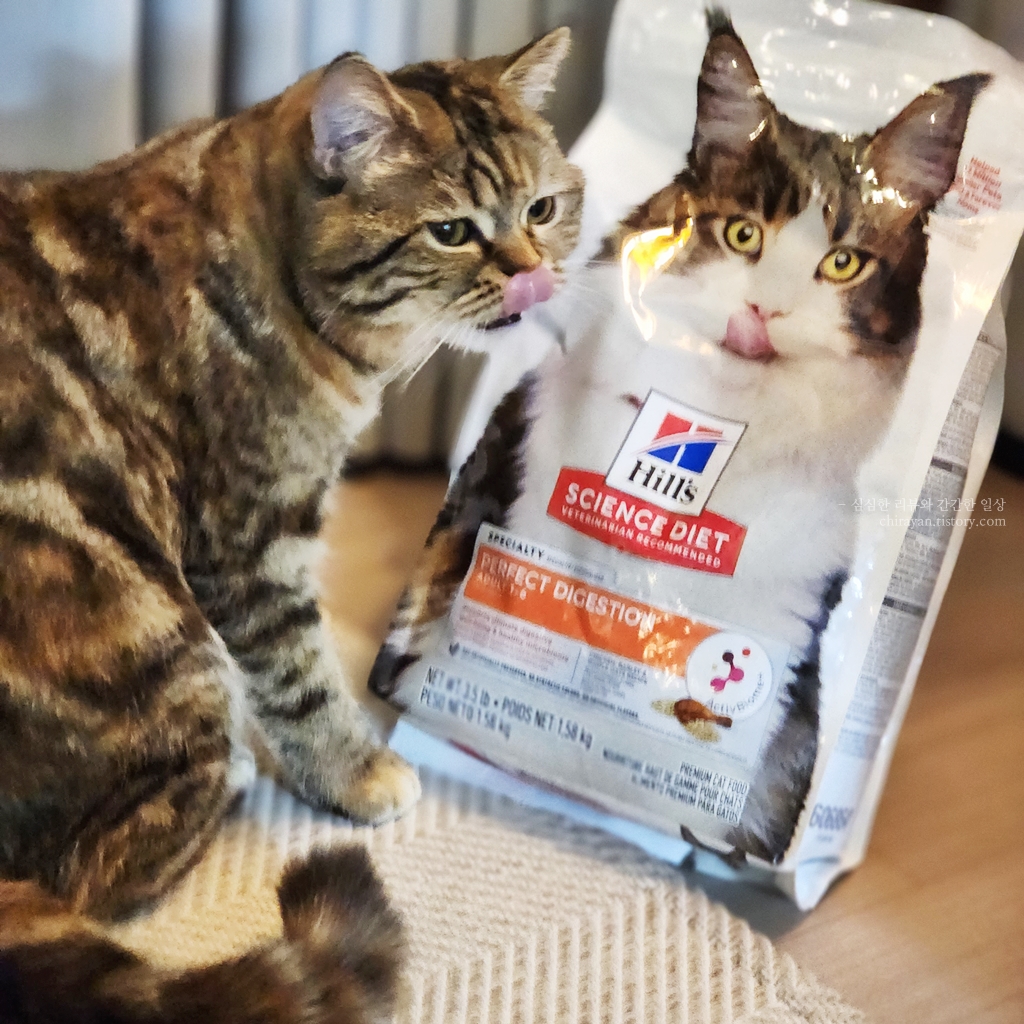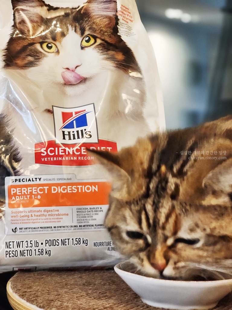 힐스 퍼펙트 다이제스쳔이라는 이름답게 내 고양이의 소화계와 잘 맞는지를 알 수 있게 된다.