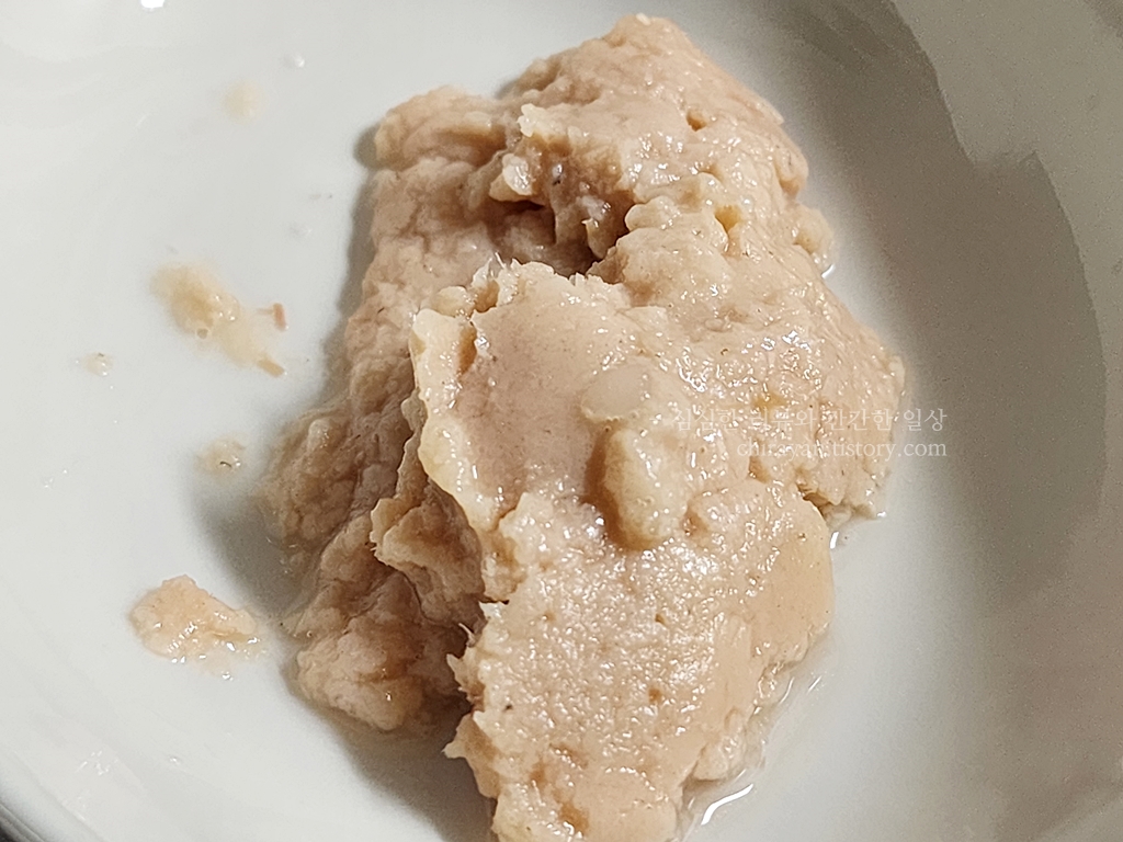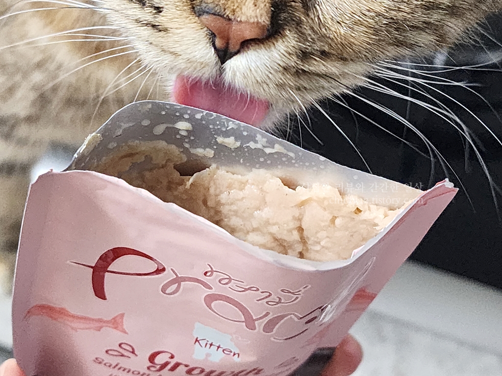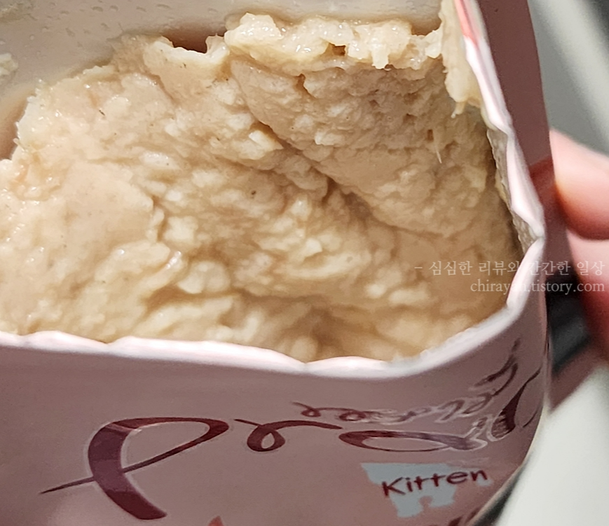 키튼용 닭(타우린 강화 파우치)보다 냄새가 조금 덜해서 나은듯하다. 이건 의외다.