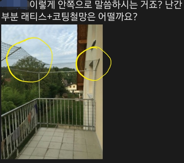 그물망(PVC망이든 금속망이든 코팅망이든) 난간내측에 덧대고 나서 시간이 지나면 온도변화 때문에 오그라들거든요.