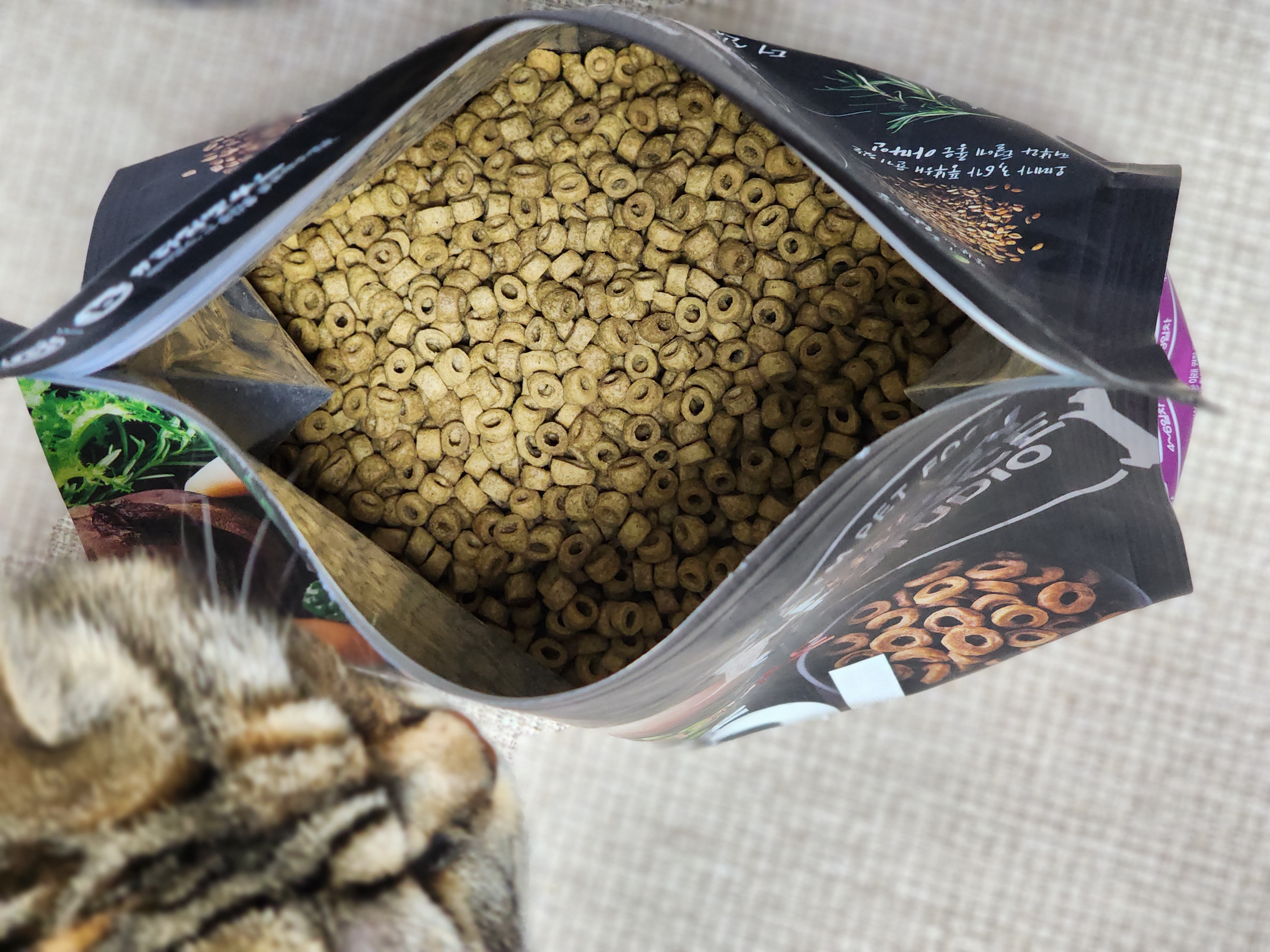 그러니 사료봉투를 가위로 잘라버리면 곤란합니다.