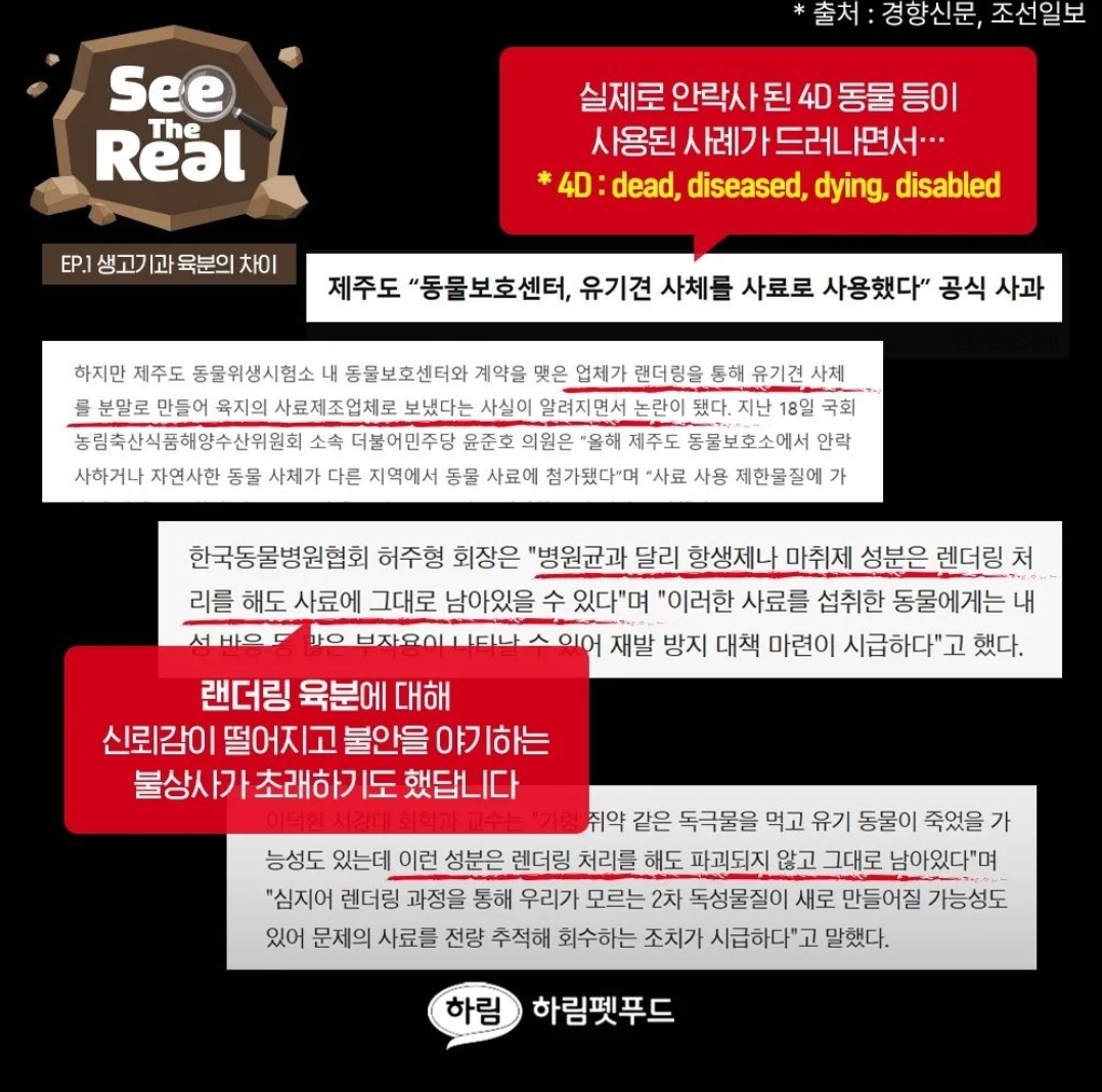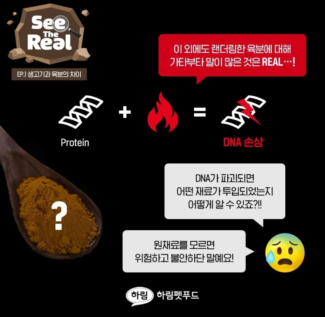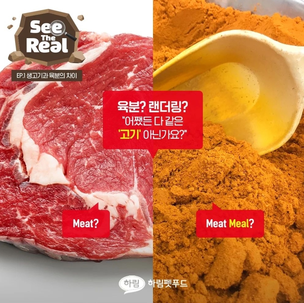 애매하게 '디하이드레이트 가금류', 'chicken meal' 따위 사용하지 않음.