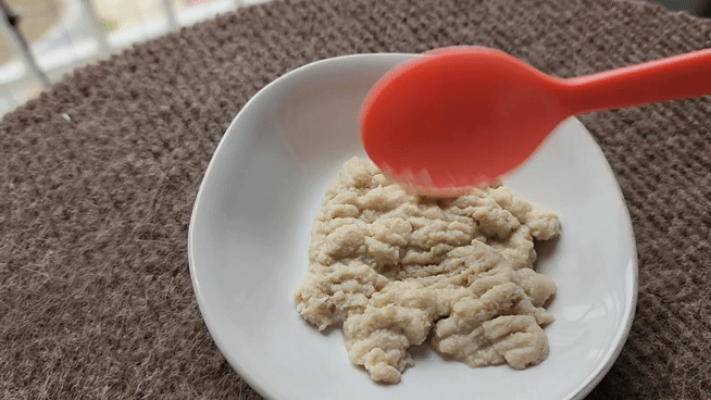 온수 한스푼을 넣어 풀어주니 잘 먹었다.