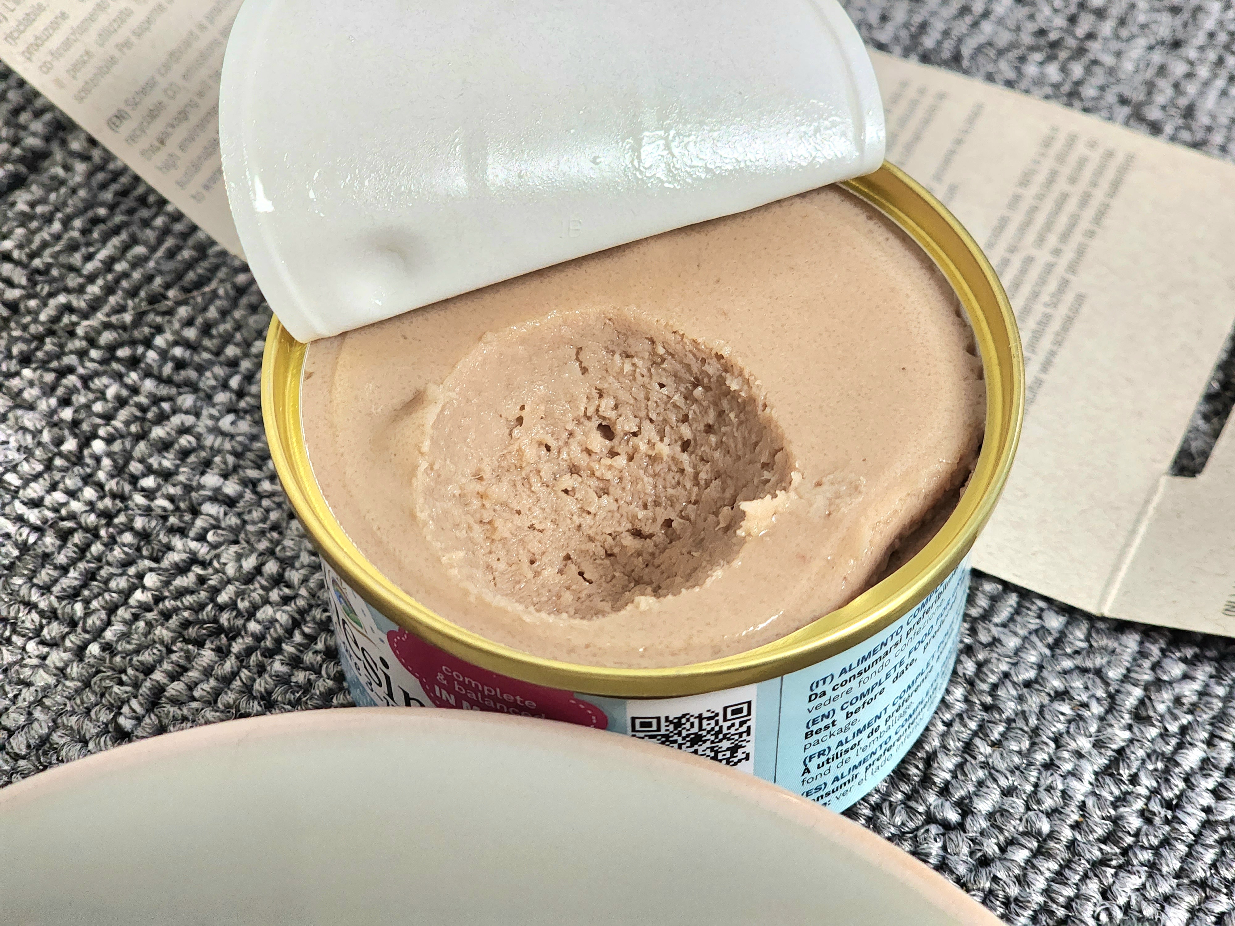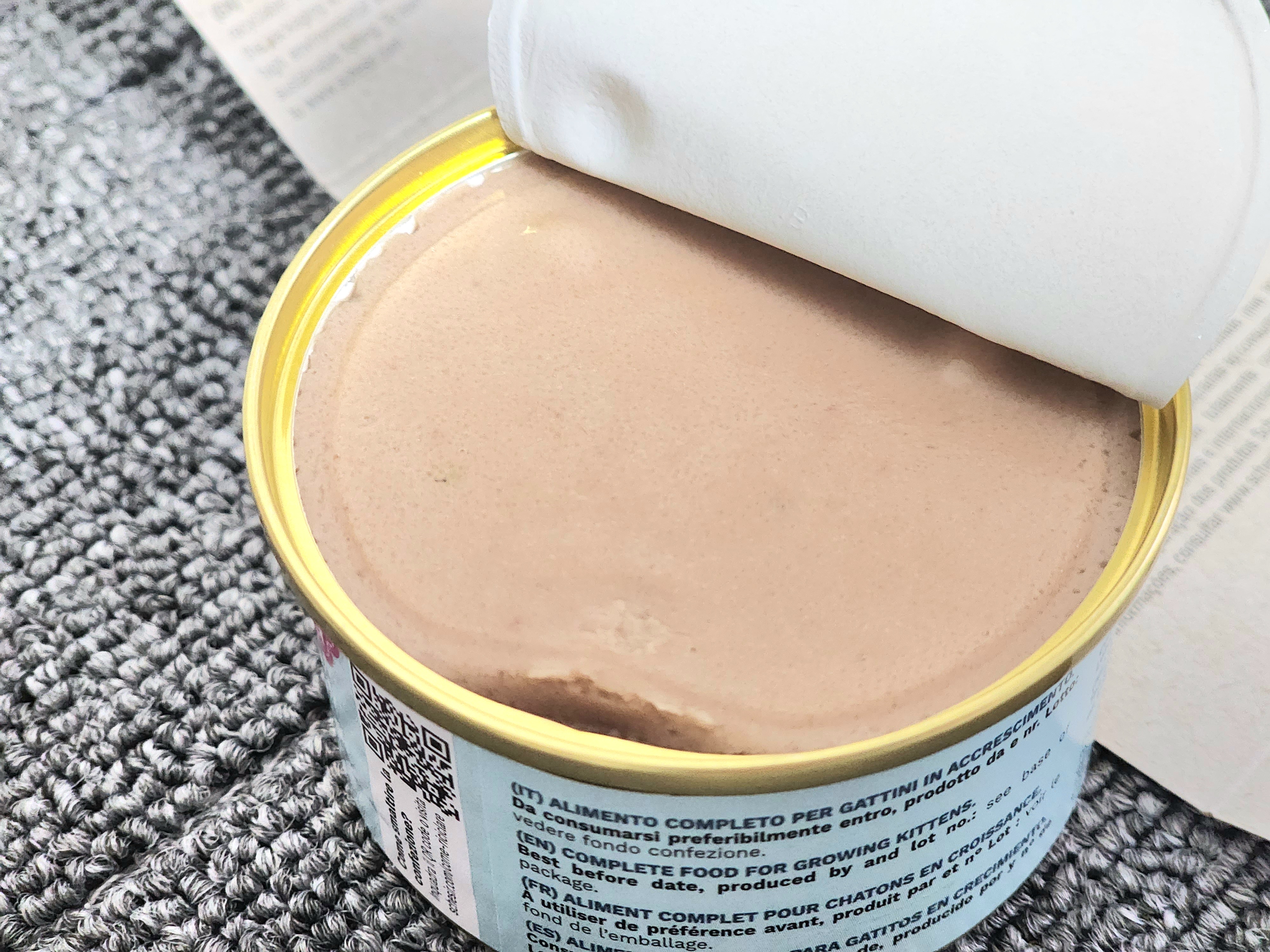 매끈한 질감이 느껴지는, 캔 그대로의 모습을 유지한 내용물이 보인다