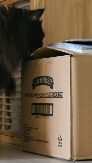 이미 봉투 뜯어 냥장실 바닥에 깔아 보는 순간