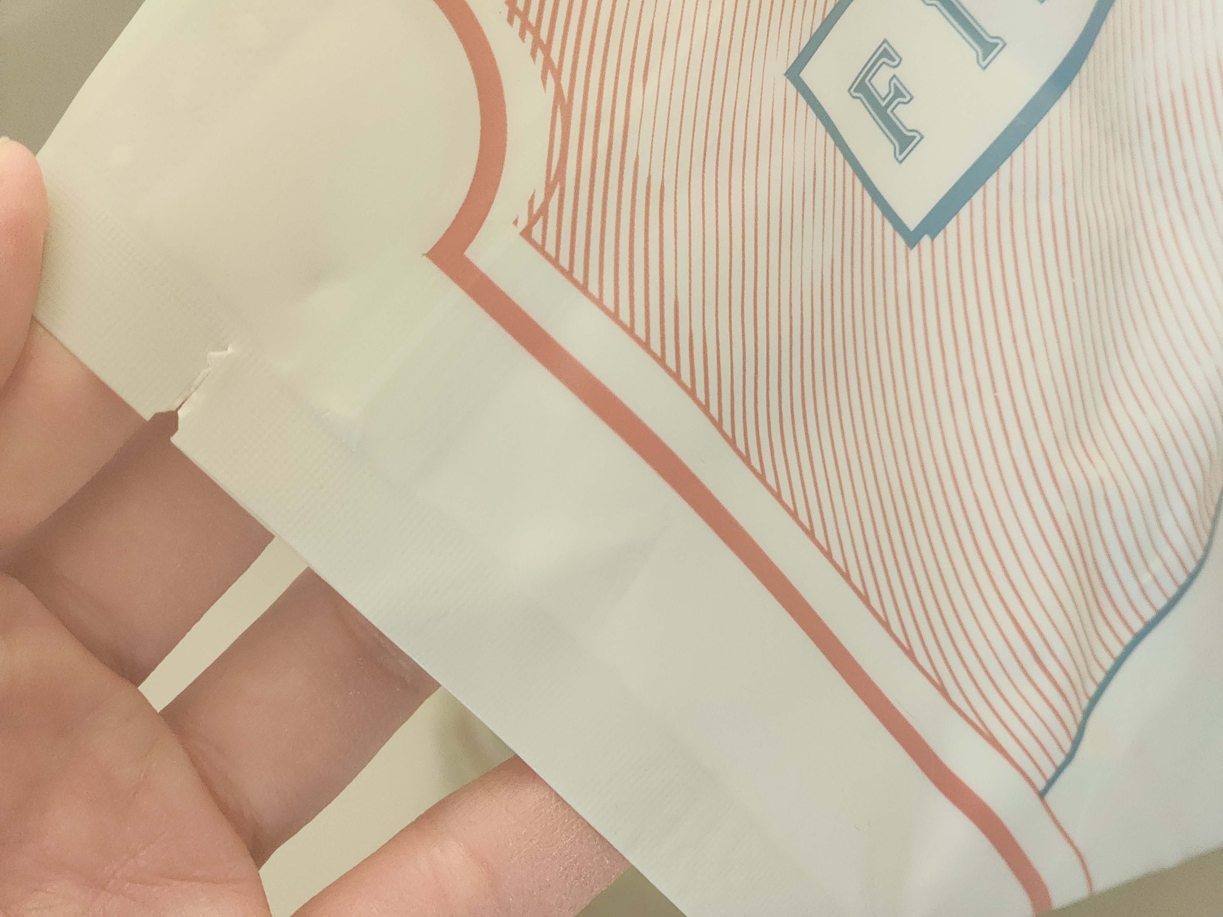 지퍼백 라인을 비스듬히 침범하지도 않고,
