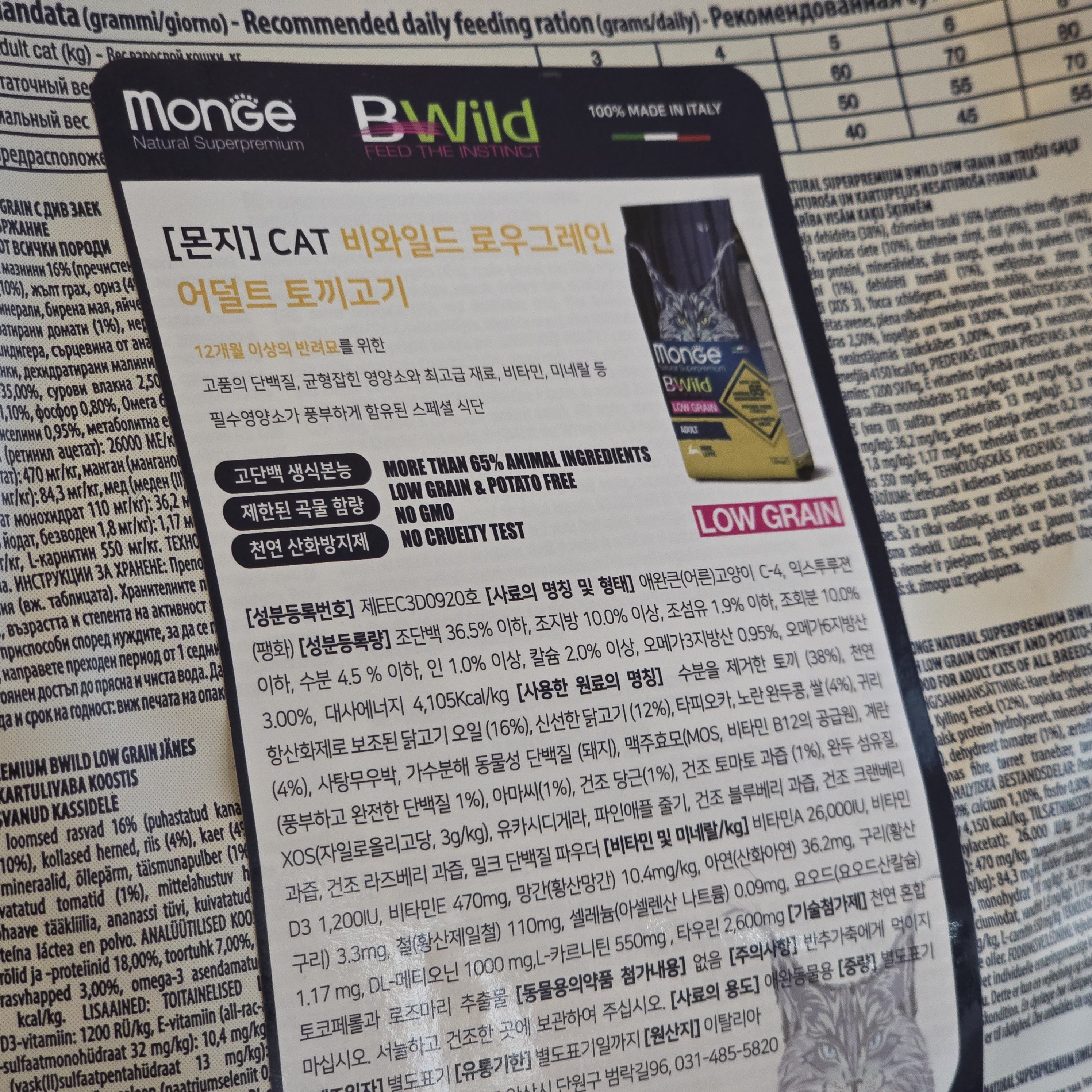 *주 원료는 토끼&닭이다. 토끼 모노프로틴 제품은 따로 있음.