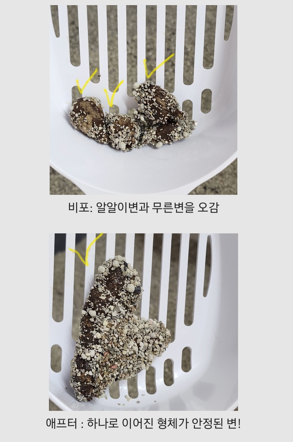 일단 두 고양이의 배변패턴은 완전 다름.