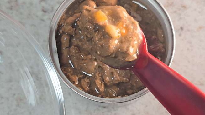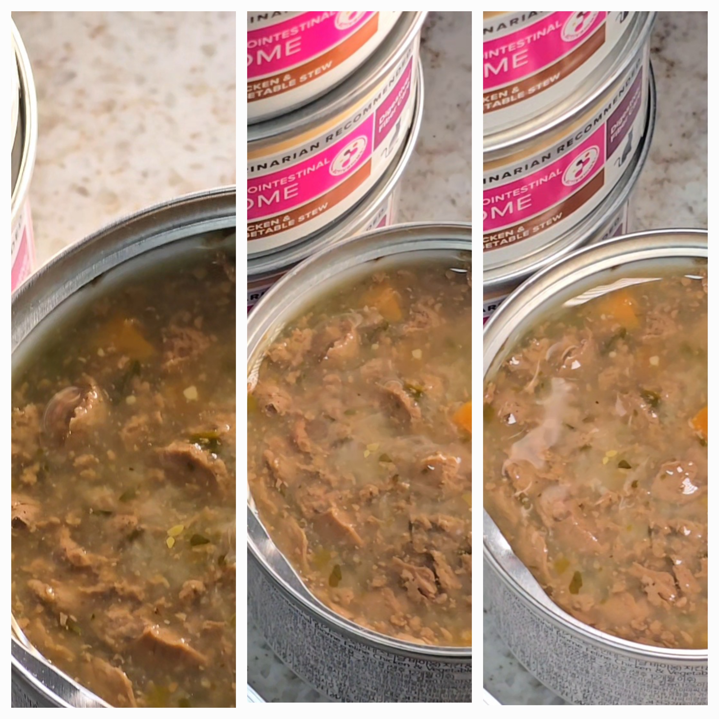 (방금 딴 캔의 색이 미묘하게 낯설어, 온라인상의 여러 캔 내용물 사진과 비교해보는 보호자들을 위하여)